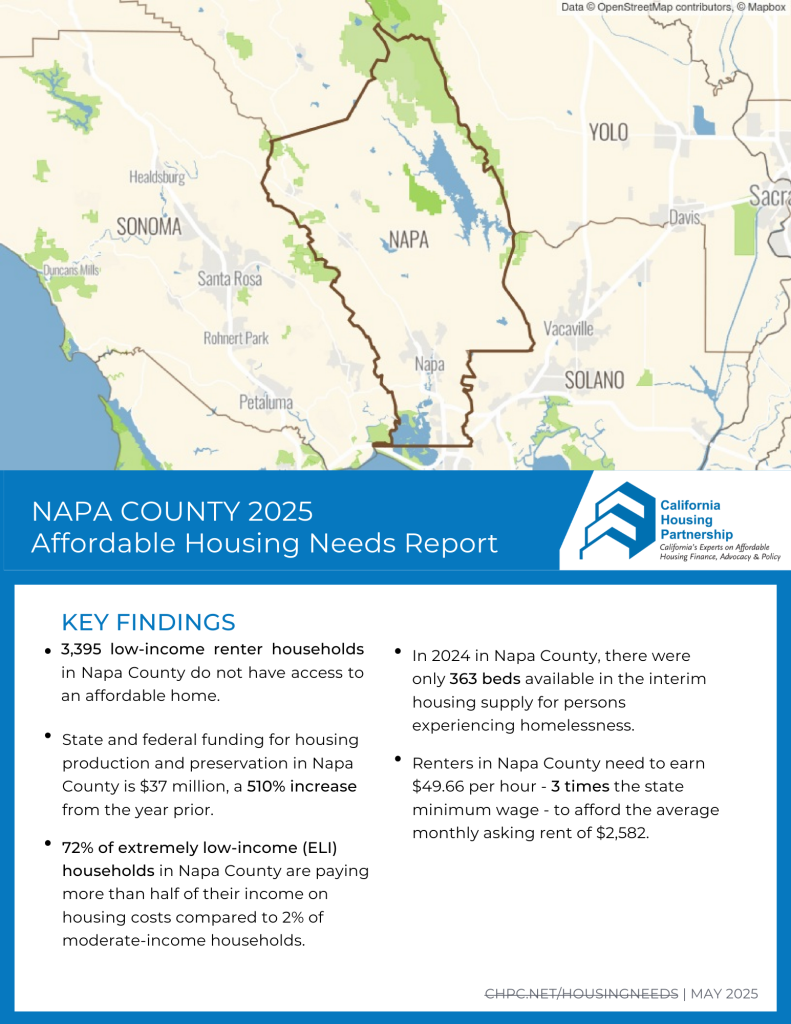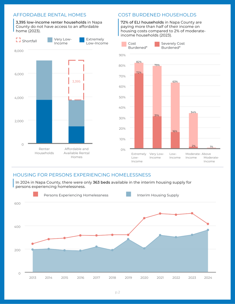 • 3,395 low-income renter households in Napa County do not have access to an affordable home.